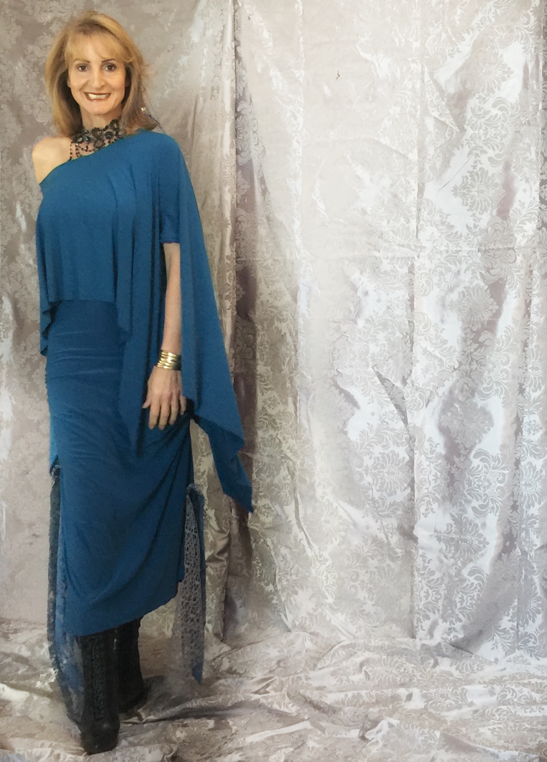 LENGTH: pull on the shawl, stand infront of your mirror then decide how long you want the back length and front length hems, pin, where you want the length to be for front and back. Lay the fabric on the fold selvedge edges together then cut front hem seperately and do the same for the back.