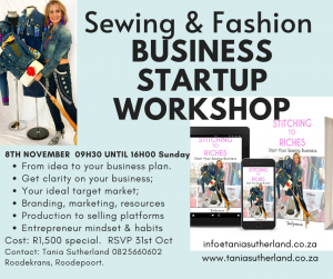 You would need to bring along a few items, which my team will inform you when you RSVP 31st October, this is the last Sewing & Business startup workshop for 2020,