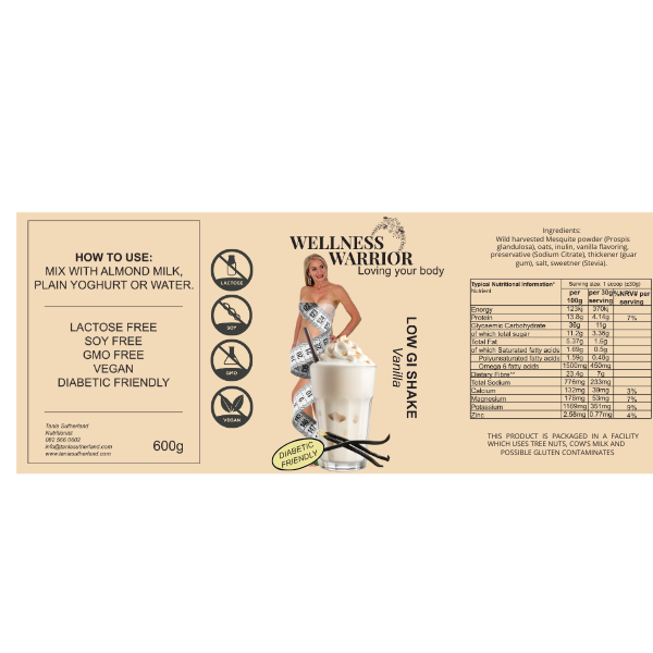 Add 1 level measuring scoop (±32g) of Wellness Warrior Shake powder in a shaker or blender with a cup (250ml) of non-fat or skimmed milk, almond milk.
